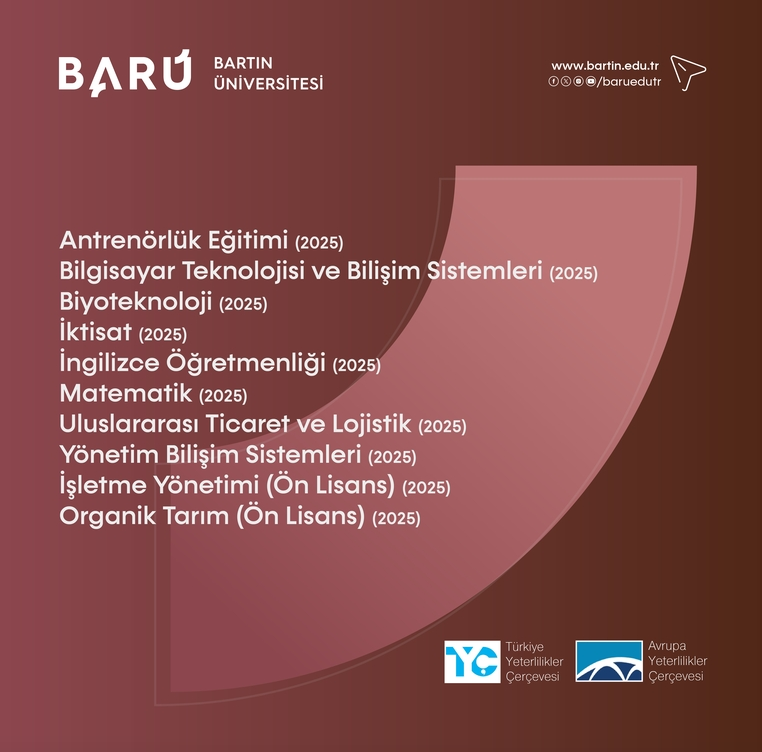 Bartın Üniversitesinde (BARÜ) eğitimde kalite güvencesi çalışmaları devam ediyor. Bu kapsamda Türkiye Yeterlilikler Çerçevesi (TYÇ) Kurulu tarafından mezunların diplomalarının hem ulusal düzeyde hem de Avrupa'da daha kolay tanınmasına ve istihdam edilebilirliklerinin artmasına olanak sağlayan TYÇ logolu program sayısı 29’a yükseldi. Son olarak BARÜ’den 8 lisans ve 2 ön lisans programı TYÇ veri tabanına eklenme başarısı gösterdi.