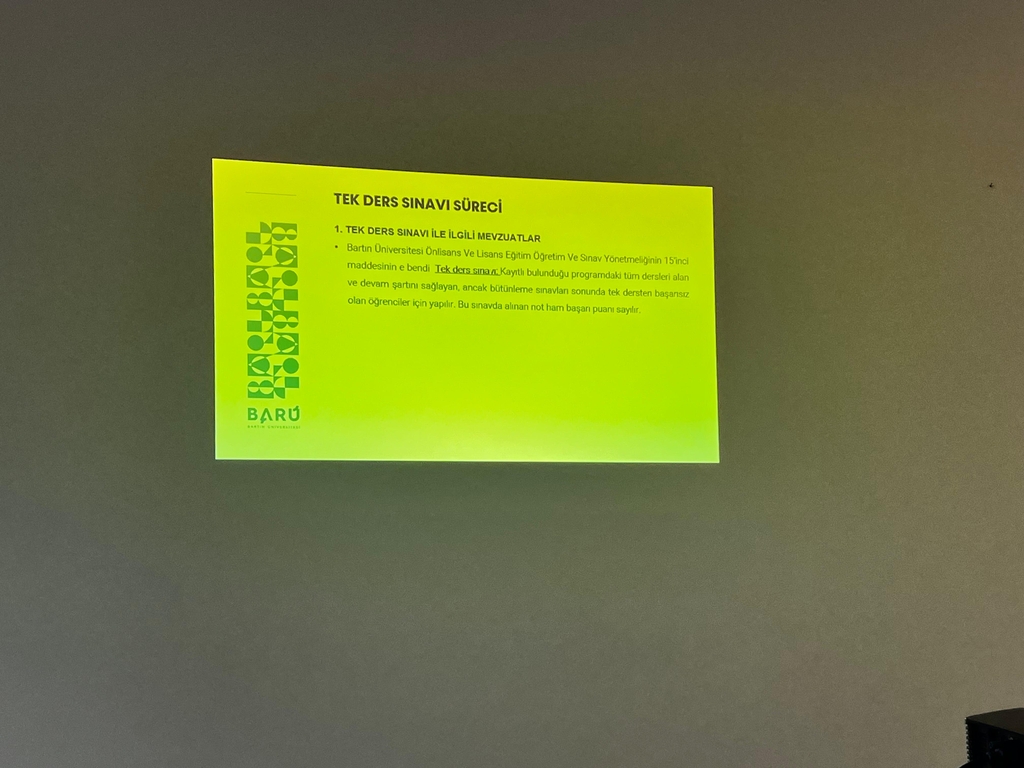 Başkanlığımız, personelinin mesleki yetkinliklerini artırmak, hizmet kalitesini yükseltmek ve uygulama birliğini sağlamak amacıyla yürüttüğü birim içi eğitim faaliyetlerine aralıksız devam etmektedir. Bu kapsamda düzenlenen eğitim programı, Şefimiz İlknur BEŞİNCİ tarafından gerçekleştirilmiştir. Eğitimde, akademik takvimin en yoğun süreçlerinden biri olan sınav dönemlerinin Üniversite Bilgi Yönetim Sistemi (UBYS) üzerinden sağlıklı bir şekilde yürütülmesi konusu detaylı olarak ele alınmıştır. Şef İlknur BEŞİNCİ tarafından yapılan sunumda;