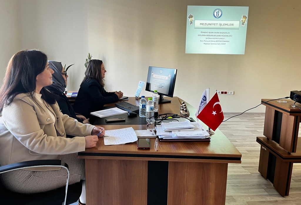 Bu kapsamda düzenlenen son eğitim programının ana gündem maddesini, akademik takvimin en kritik ve hassas dönemlerinden biri olan "Mezuniyet ve Diploma Basım Süreçleri" oluşturmuştur. Eğitim, konularında yetkin personelimiz Şef Dilek KUVVETLİOĞLU, Bilgisayar İşletmeni Selin GARİP ve Büro Personeli Gülcan BÜYÜKTÜRKMEN tarafından ortaklaşa gerçekleştirilmiştir.