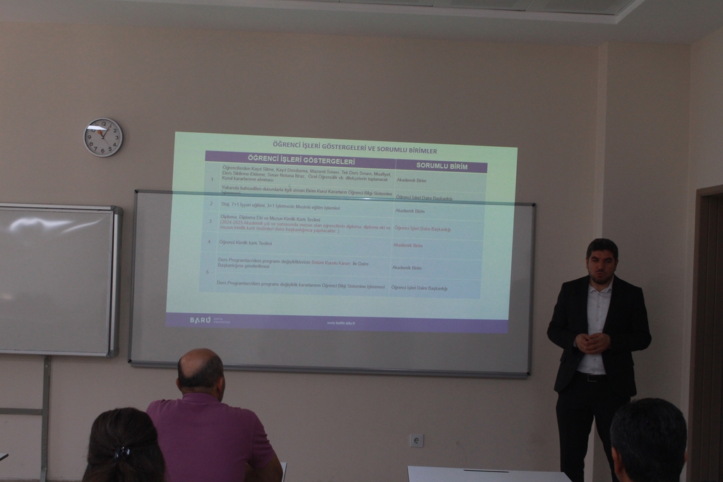 Üniversitemizde öğrenci iş ve işlemlerinin Öğrenci İşleri Daire Başkanlığı tarafından merkezi olarak yürütülmesine yönelik başlatılan dönüşüm süreci kapsamında, akademik birimlere yönelik bilgilendirme toplantıları gerçekleştirildi.